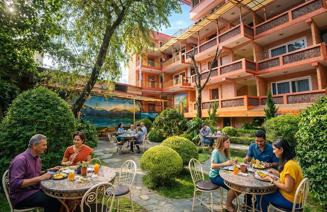 El Kathmandu Aagantuk Hotel proporciona proximidad al Jardín de los Sueños, que se encuentra a unos 15 minutos a pie. Situado a tan solo 550 metros del Kala Pattar, este hotel ofrece 32 habitaciones y un bar en la azotea.